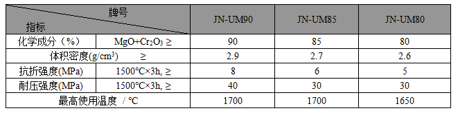 ·JN系列鎂質快硬料主要理化指標·